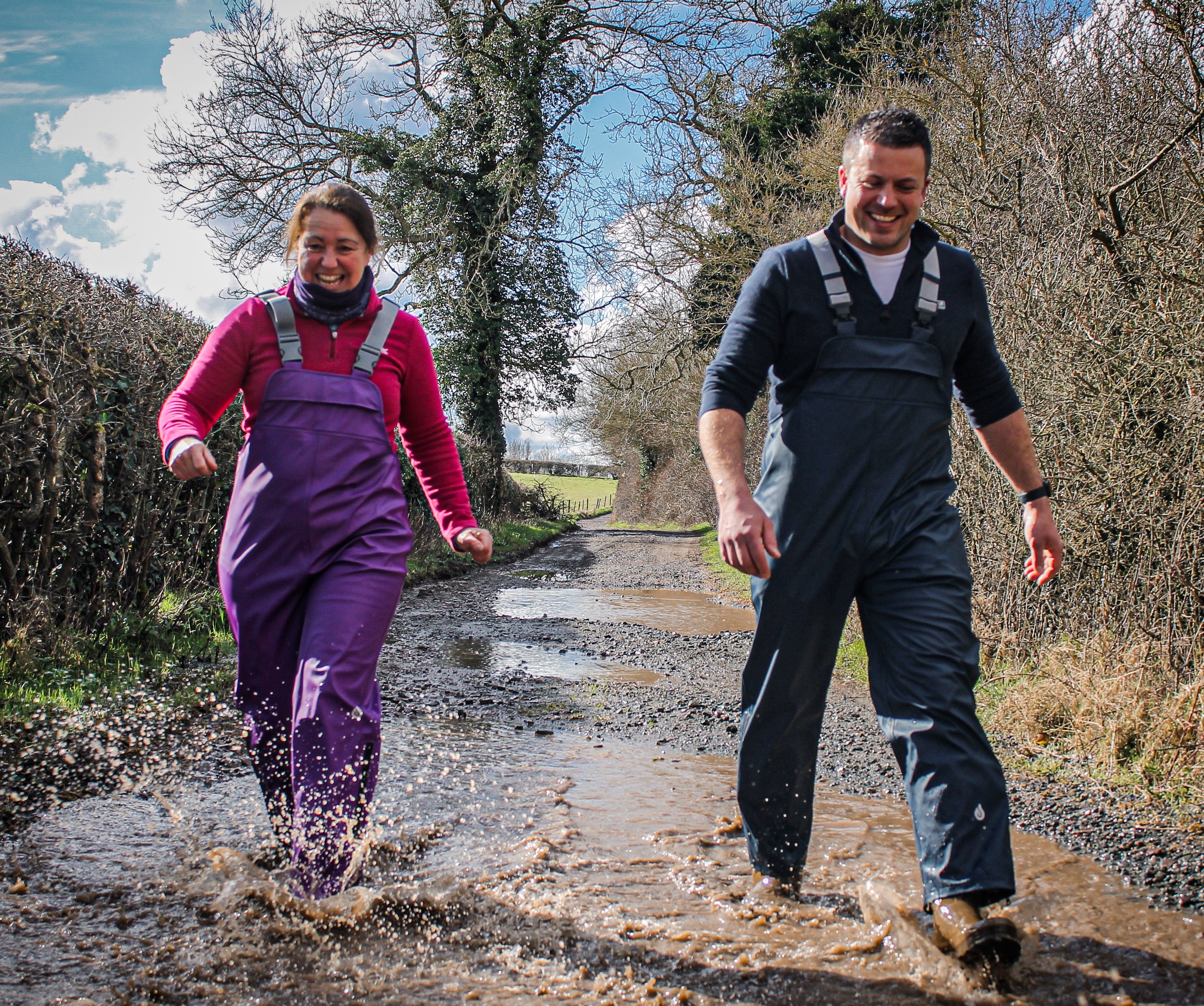 - Dry Kids waterproof dungarees for adults are made from waterproof PU coated fabric with heat sealed seams for totally dry outdoor activities.